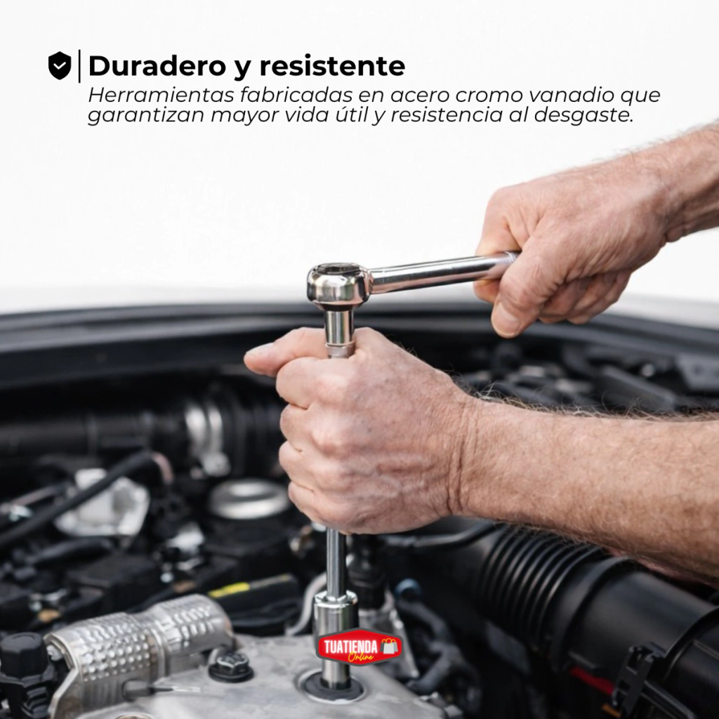 • Duradero y resistente: herramientas fabricadas en acero cromo vanadio que garantizan mayor vida útil, resistencia al desgaste.