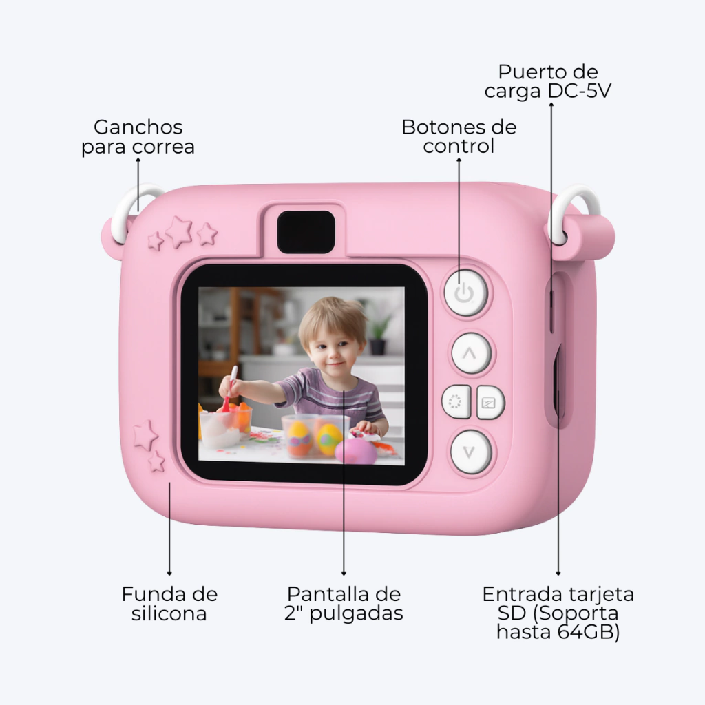Ideal para los más chicos, esta mini camarita digital combina diversión y creatividad en un solo dispositivo: permite sacar fotos, grabar videos y hasta jugar, todo en un formato compacto y fácil de usar. Perfecta para entretener y fomentar la imaginación.
