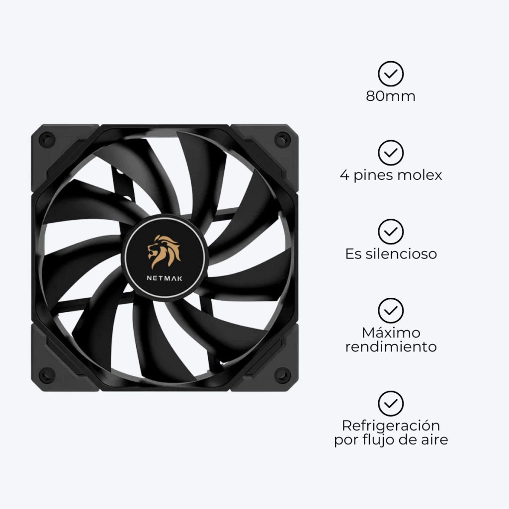 Este cooler está diseñado para ofrecer un rendimiento óptimo y un funcionamiento super silencioso. Su tamaño de 80mm es compatible con diversos gabinetes. Su alta eficiencia asegura que tu sistema se mantenga fresco, prolongando su vida útil y asegurarando un rendimiento óptimo en todo momento.