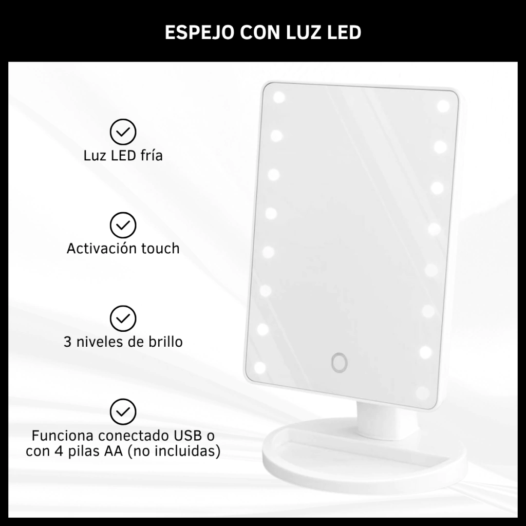 ESPEJO DE MAQUILLAJE CON LUZ LED