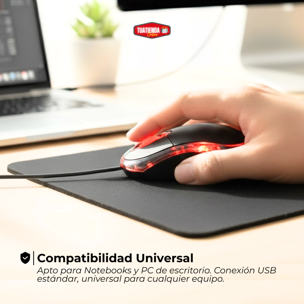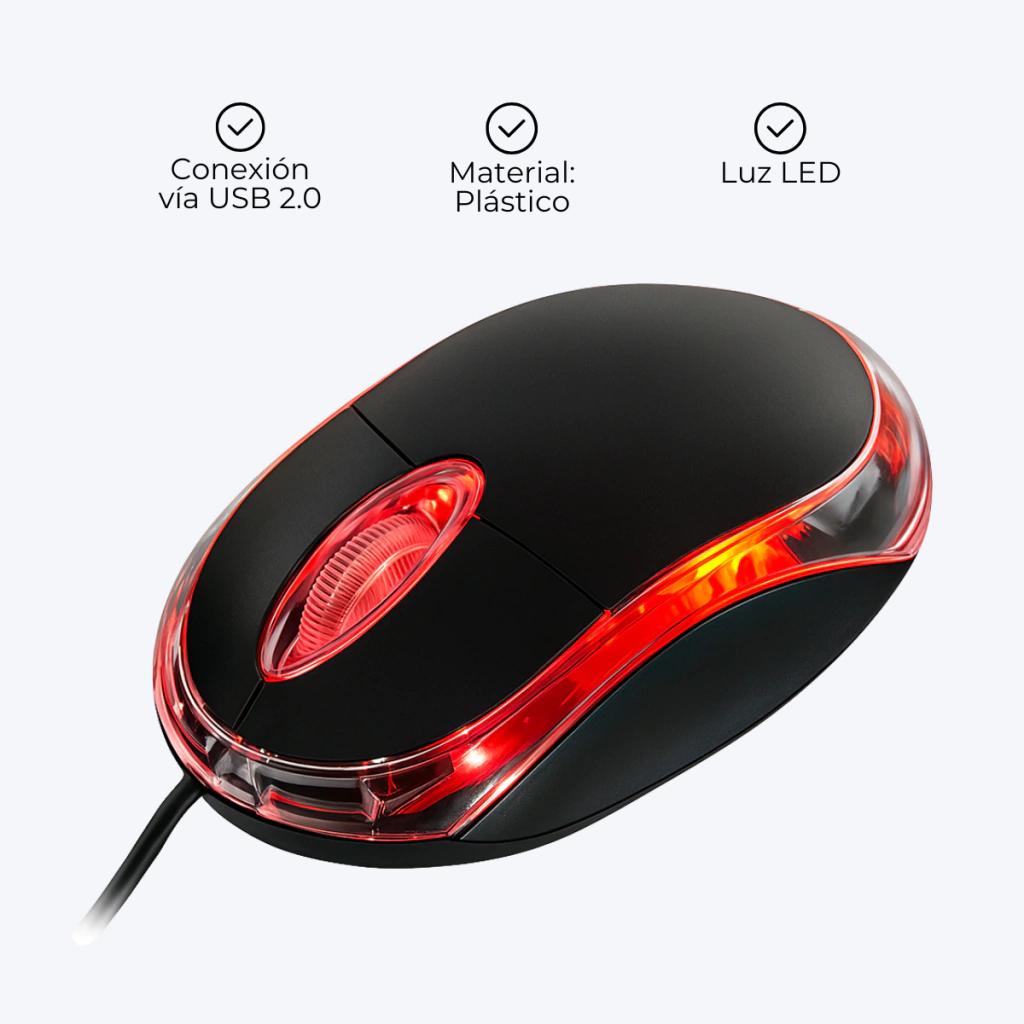 Este mouse es la combinación perfecta de funcionalidad, estética y comodidad. Su diseño ergonómico se adapta cómodamente a tu mano. Su conexión USB con cable garantiza una transmisión de datos instantánea y constante. Además, su instalación es sencilla gracias a la funcionalidad Plug & Play, compatible con la mayoría de los sistemas operativos.