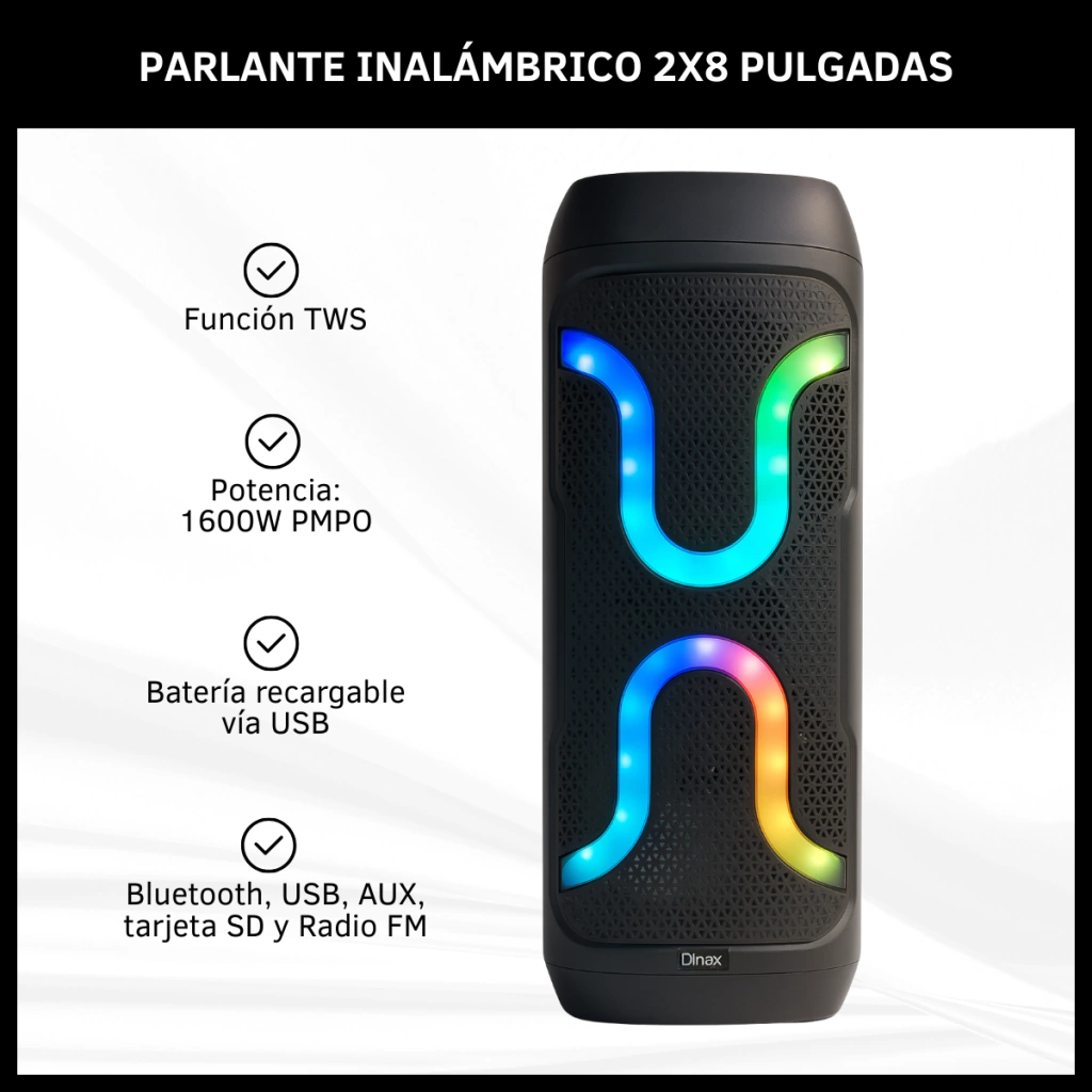 Compacto, moderno y fácil de transportar, ¡este parlante es tu compañero ideal para cada momento! Ideal para ambientar tus reuniones o disfrutar en casa con estilo. Su sonido potente, conexión Bluetooth y batería recargable lo hacen práctico y versátil.