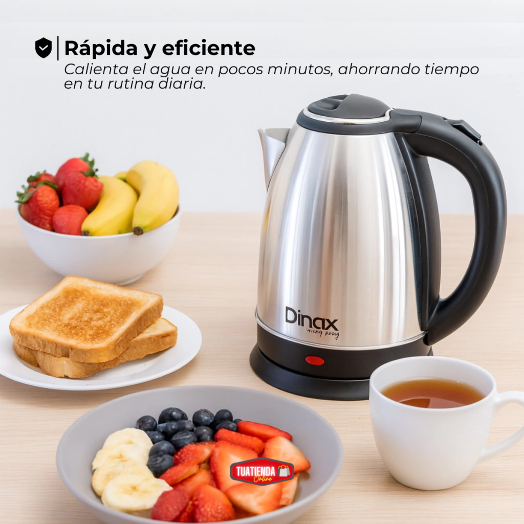 Esta pava eléctrica calienta el agua en minutos, ahorrándote tiempo todos los días. Podés preparar mate, café, té, sopas instantáneas o cualquier infusión al instante. Te da seguridad porque se apaga sola al hervir el agua y su diseño elegante aporta un toque moderno a tu cocina.