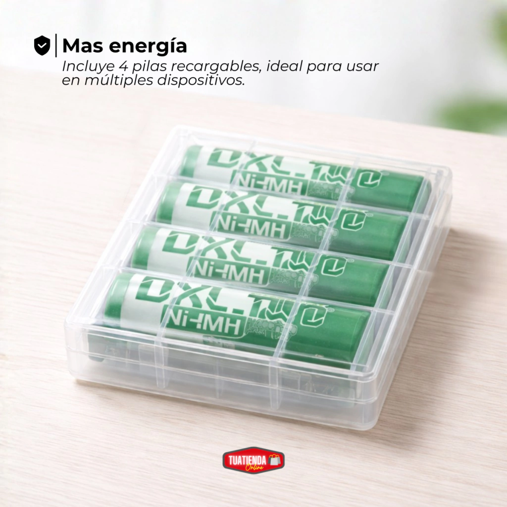 Olvidate de comprar pilas descartables todo el tiempo. Con este pack de 4 pilas recargables AAA de 1600mAh vas a tener energía confiable y reutilizable para tus dispositivos.