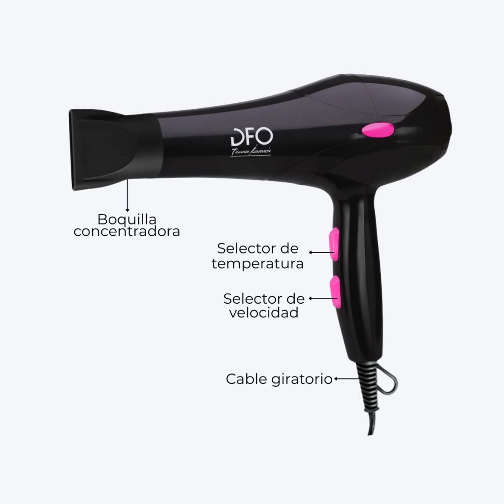 Este secador de pelo práctico y potente está diseñado para lograr un secado rápido y eficaz sin dañar tu cabello. Ideal para uso diario, combina comodidad, velocidad y resultados profesionales en la comodidad de tu casa.