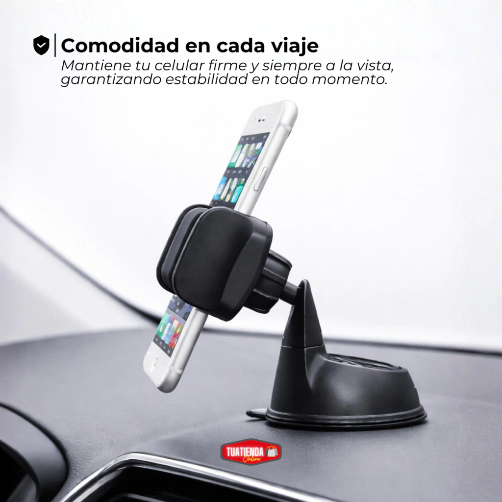 El soporte porta celular para auto te permite manejar con mayor comodidad y seguridad. Mantiene el celular firme, a la vista y al alcance para usar GPS o atender llamadas sin distracciones. Una solución práctica para viajes diarios y trayectos largos.