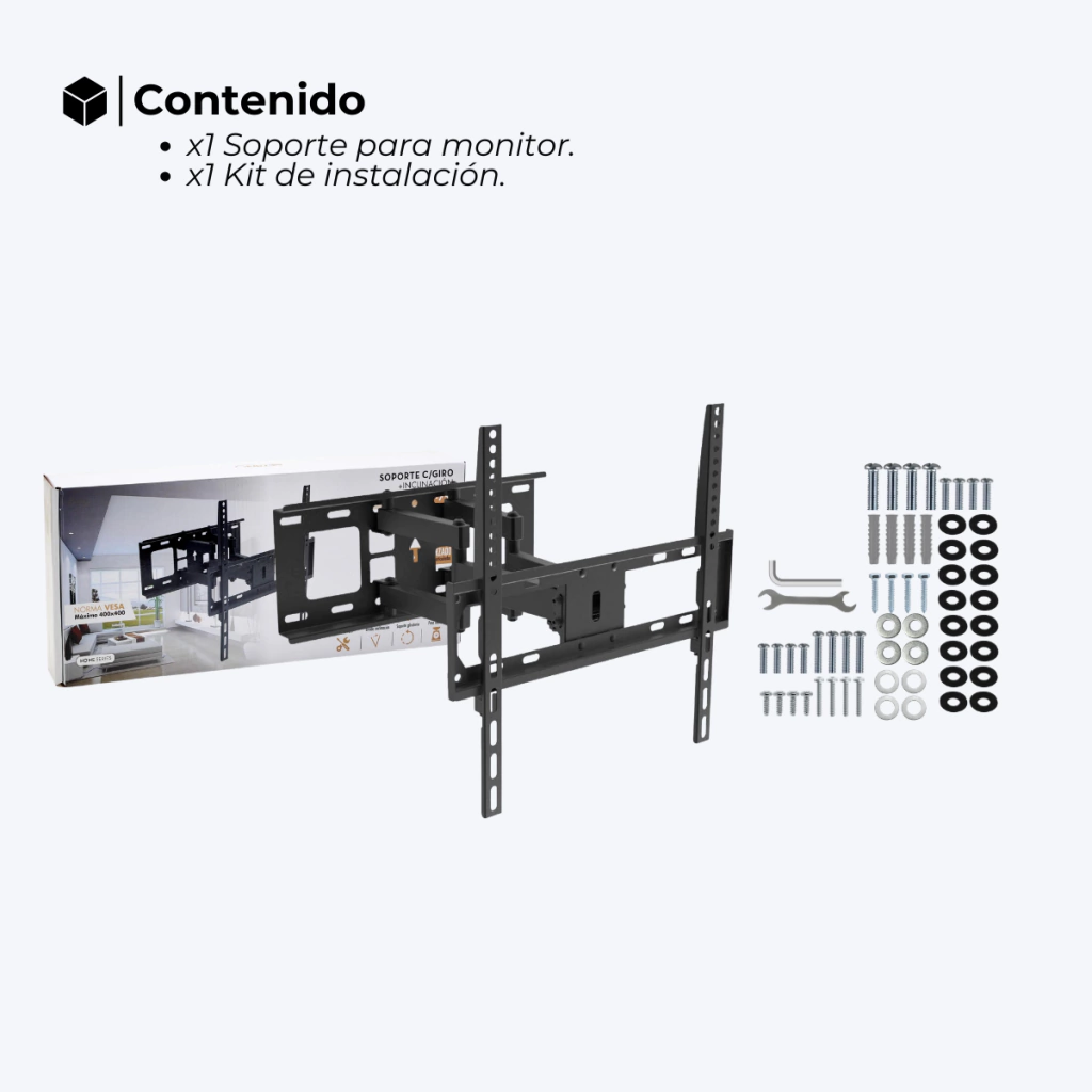 Es compatible con pantallas LED y LCD, su diseño inclinable y giratorio asegura que puedas disfrutar de tus programas y películas favoritas sin restricciones. Su instalación en pared maximiza el espacio, convirtiéndolo en una opción perfecta para salas de estar, dormitorios o cualquier área donde desees disfrutar de entretenimiento.