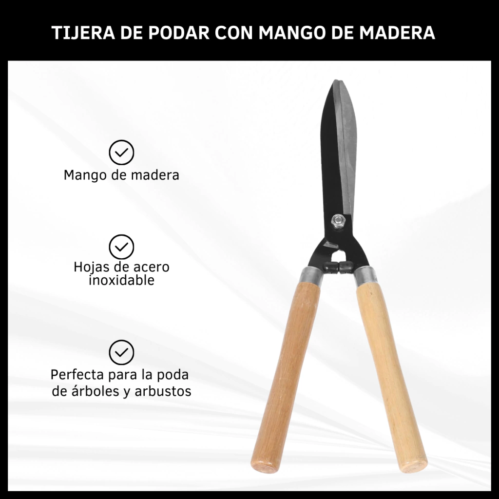 Tiene una hoja afilada que permite cortes limpios y precisos, perfecta para flores, ramas finas, arbustos y plantas de exterior. Su mango de madera ofrece un agarre cómodo y seguro, haciendo más fácil cada tarea.
